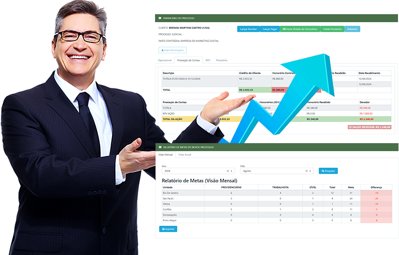 O AdvNetPro é uma solução integrada para a organização e gestão eficiente de processos jurídicos e financeiros em empresas de advocacia. As principais funcionalidades incluem: